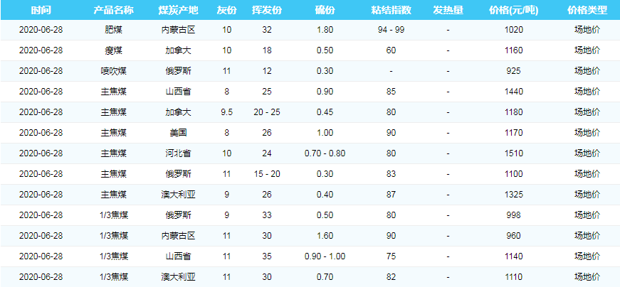 2020年6月28日天津港煤炭价格