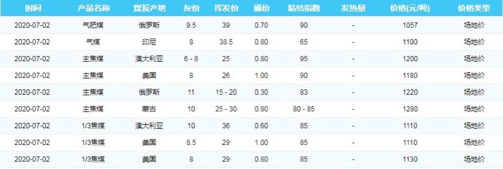 2020年7月2日天津港煤炭价格