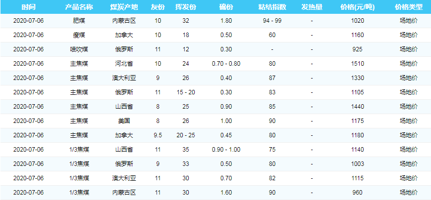 2020年7月6日天津港煤炭价格