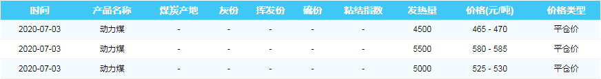 2020年7月3日黄骅港煤炭价格