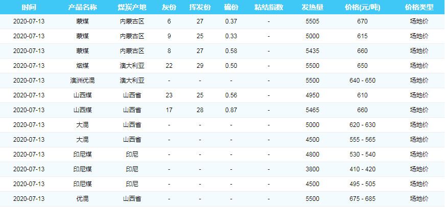 2020年7月13日广州港煤炭价格