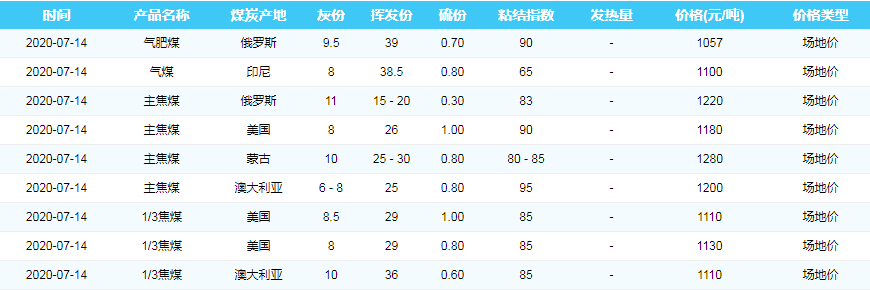 2020年7月14日京唐港煤炭价格