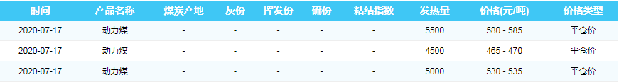 2020年7月17日黄骅港煤炭价格