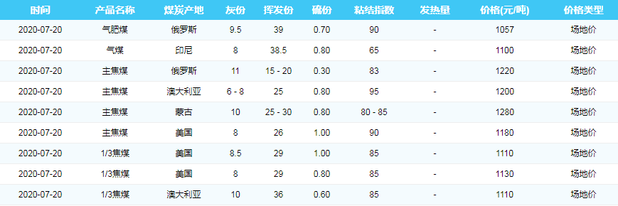 2020年7月20日广州港煤炭价格