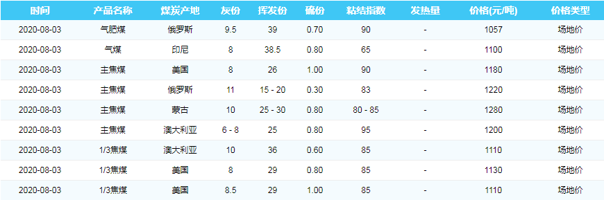 2020年8月3日天津港煤炭价格