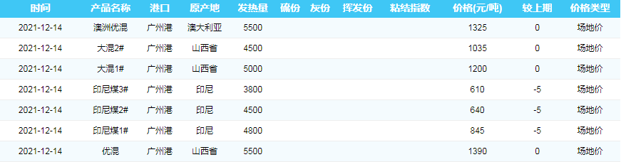 2021年12月14日广州港煤炭价格