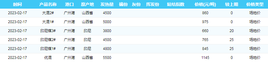 2023年2月17日广州港煤炭价格