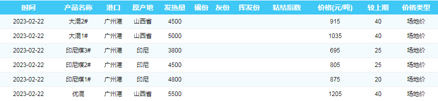 2023年2月22日广州港煤炭价格