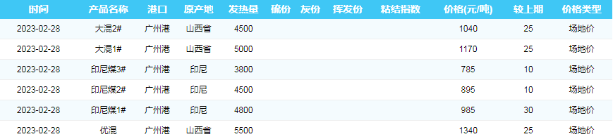 2023年2月28日广州港煤炭价格