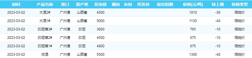 2023年3月1日广州港煤炭价格