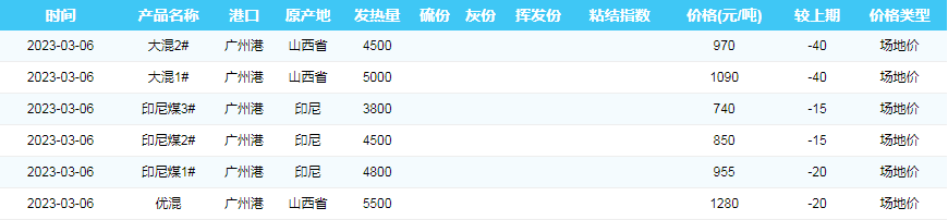 2023年3月6日广州港煤炭价格