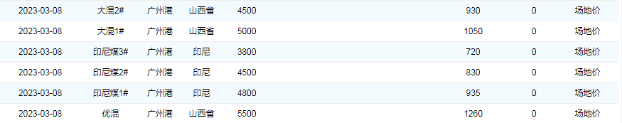 2023年3月8日广州港煤炭价格