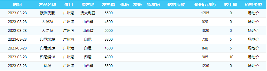 2023年3月28日广州港煤炭价格