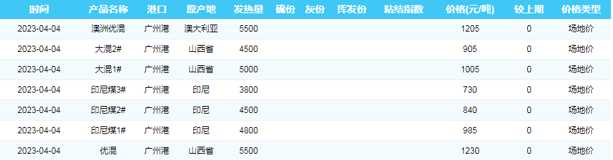 2023年4月4日广州港煤炭价格