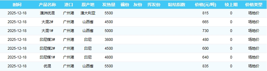 2025年12月18日广州港煤炭价格