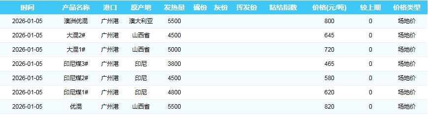 2026年1月5日广州港煤炭价格