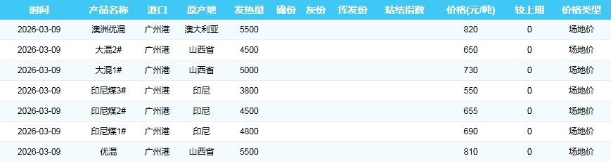 2026年3月9日广州港煤炭价格