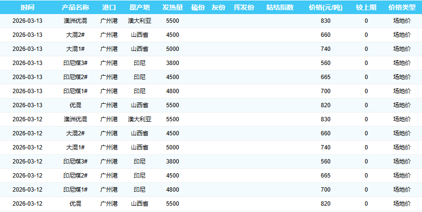 2026年3月12-13日广州港煤炭价格