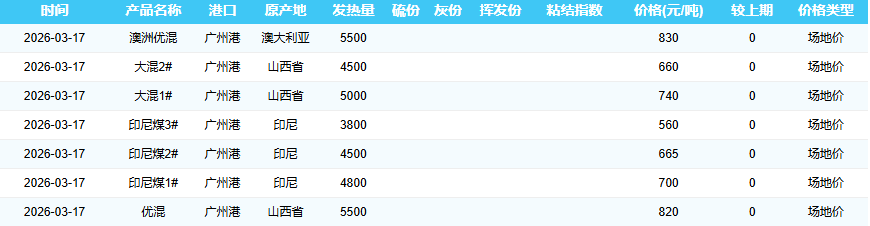 2026年3月17日广州港煤炭价格