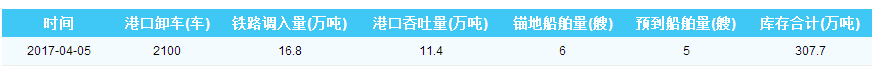 2017年4月5日曹妃甸港港口库存