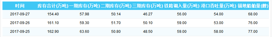 2017年9月29日国投京唐港港口库存