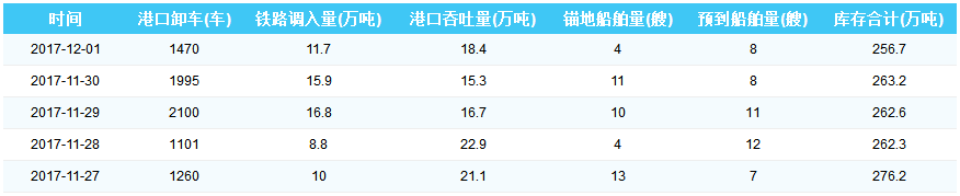 2017年12月1日秦皇岛港港口库存