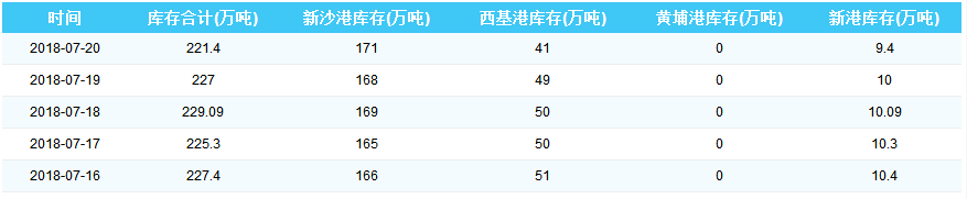 2018年7月20日广州港港口库存
