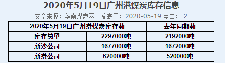 2020年5月19日广州港港口库存