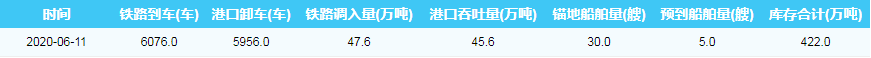 2020年6月11日秦皇岛港港口库存