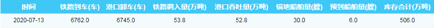 2020年7月13日秦皇岛港港口库存