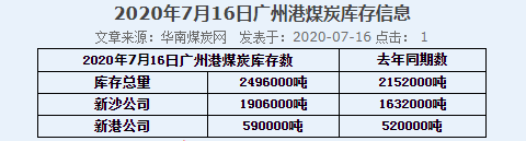 2020年7月16日广州港港口库存