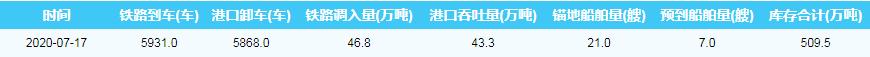 2020年7月17日秦皇岛港港口库存