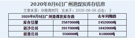 2020年8月6日广州港港口库存