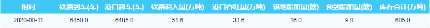 2020年8月11日秦皇岛港港口库存