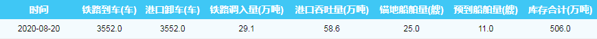 2020年8月20日秦皇岛港港口库存