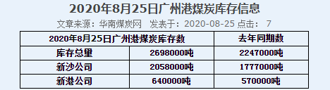 2020年8月25日广州港港口库存