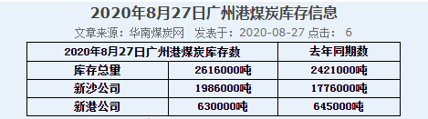 2020年8月27日广州港港口库存
