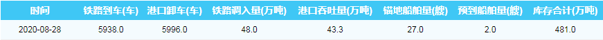 2020年8月28日秦皇岛港港口库存