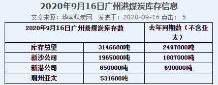 2020年9月16日广州港港口库存