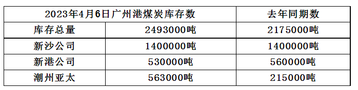 2023年4月6日广州港港口库存