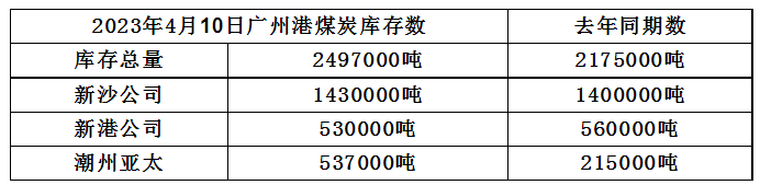 2023年4月10日广州港港口库存