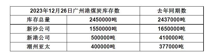 2023年12月26日广州港港口库存