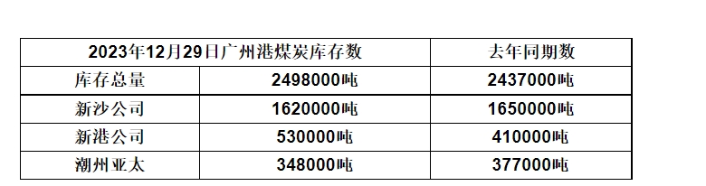 2023年12月29日广州港港口库存
