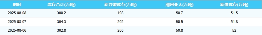 2025年8月6-8日广州港港口库存
