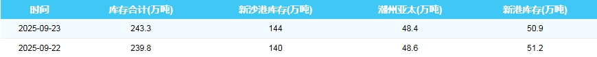 2025年9月22-23日广州港港口库存