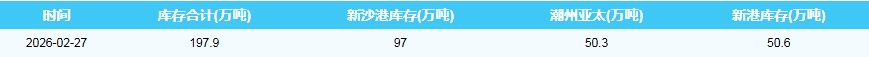 2026年2月10-26日广州港港口库存