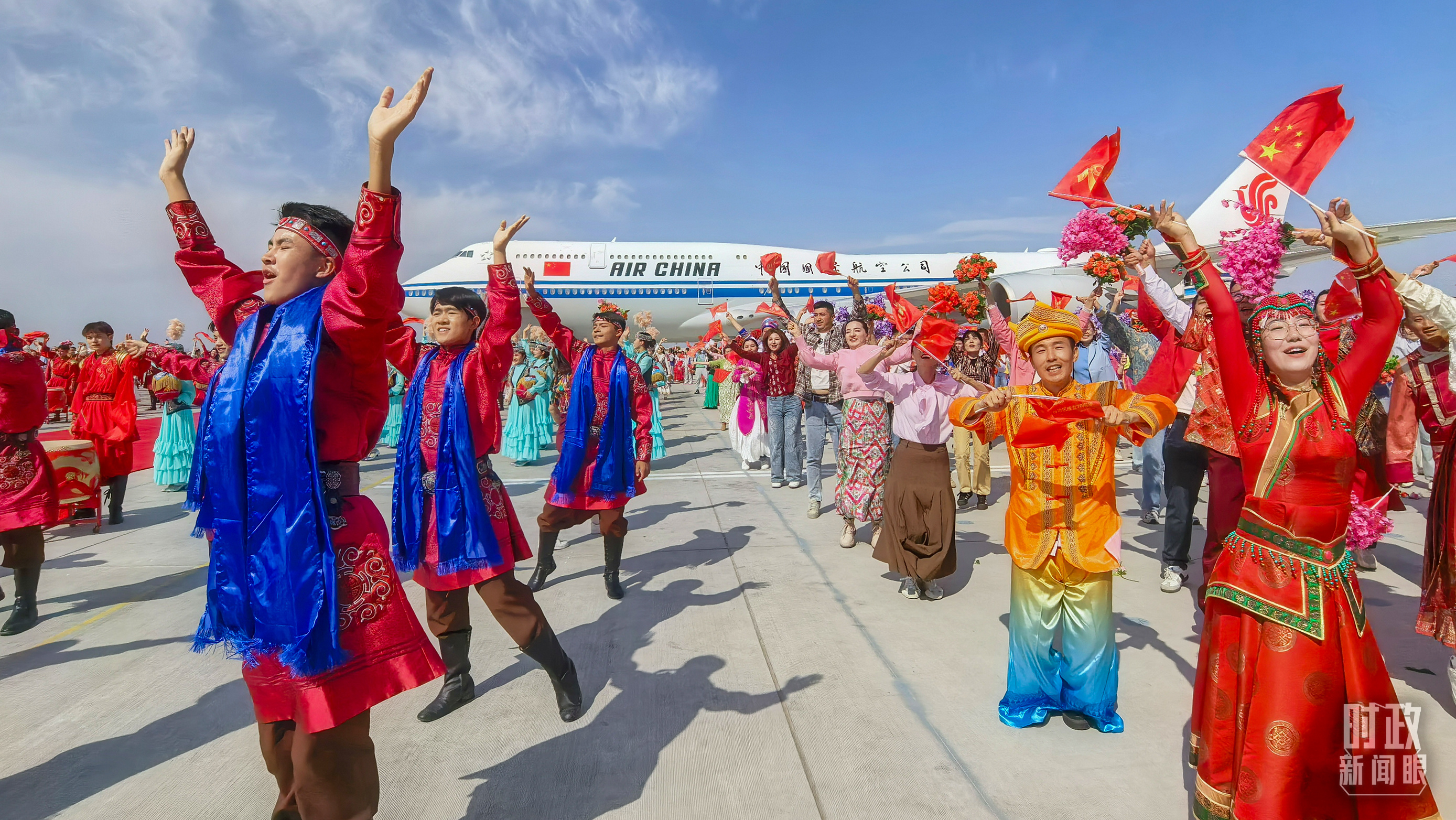 △乌鲁木齐天山国际机场,新疆各族群众热烈欢迎总书记到来。