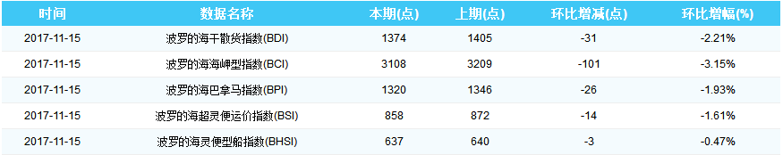 2017年11月15日国际航运指数