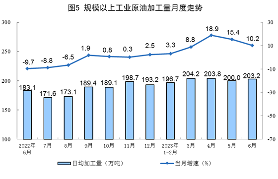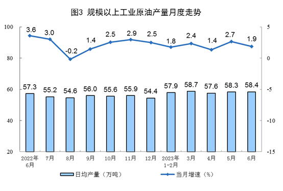 原油生产保持平稳,进口快速增长,原油加工较快增长。上半年,生产原油10505万吨,同比增长2.1%。进口原油28208万吨,同比增长11.7%。加工原油36358万吨,同比增长9.9%。6月份,生产原油1752万吨,同比增长1.9%。加工原油6095万吨,同比增长10.2%。