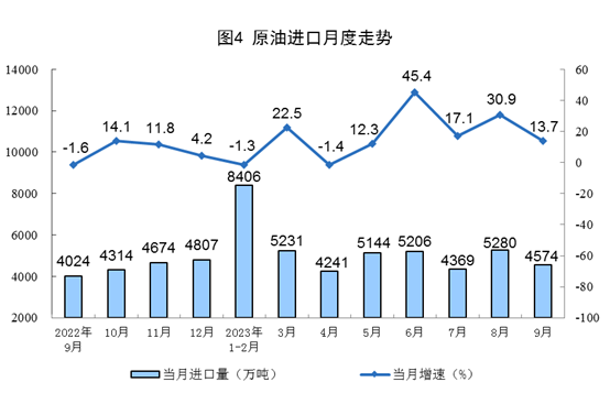 进口数据来源于海关总署,其中2023年9月份数据为快讯数据。